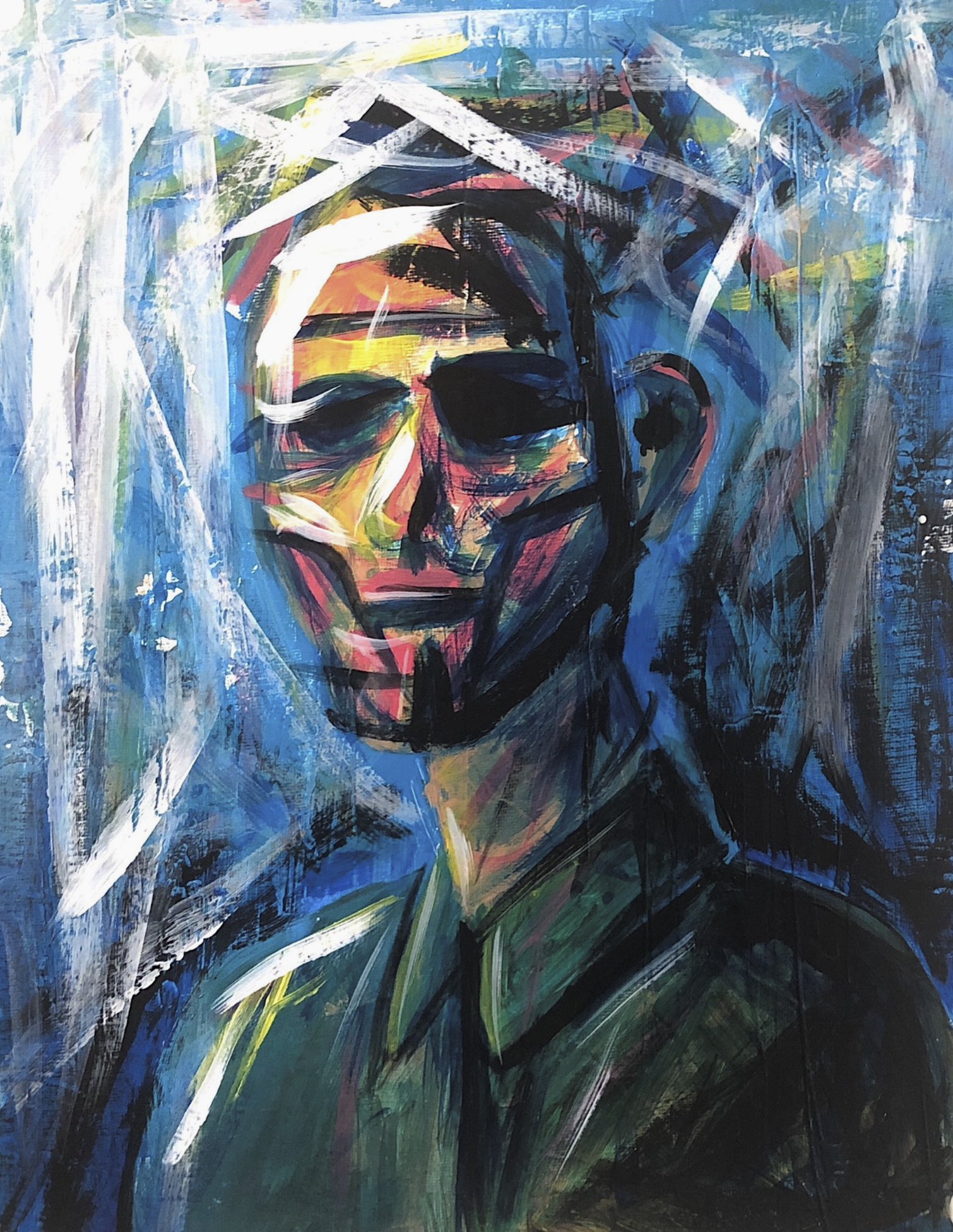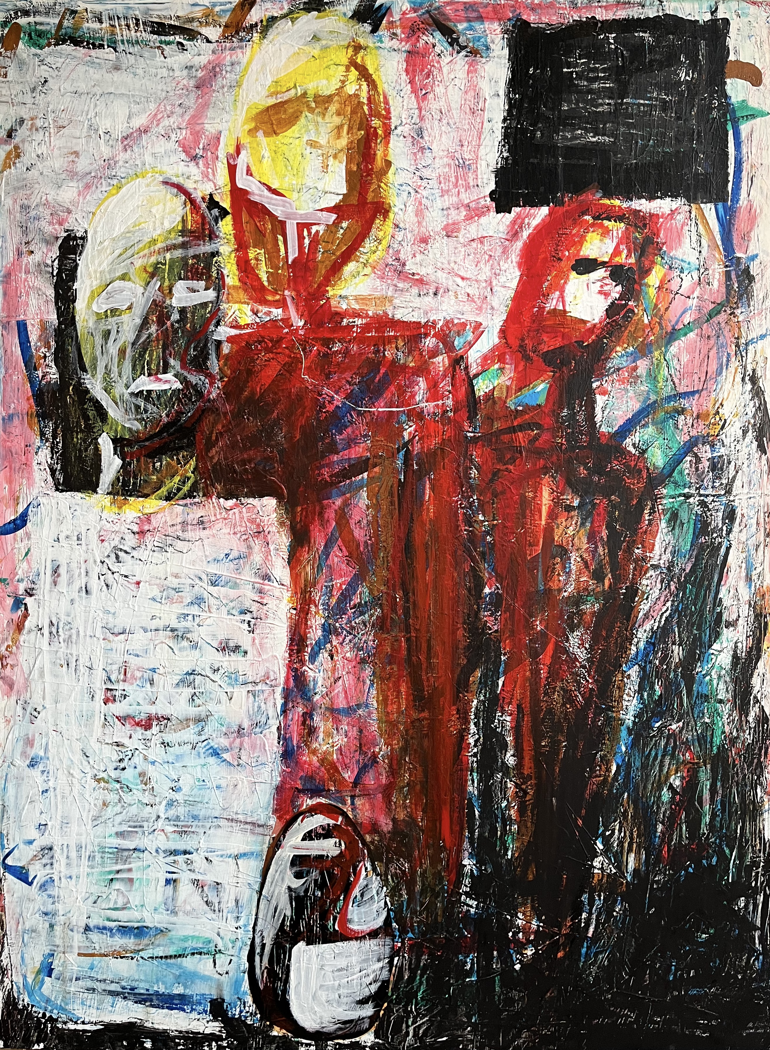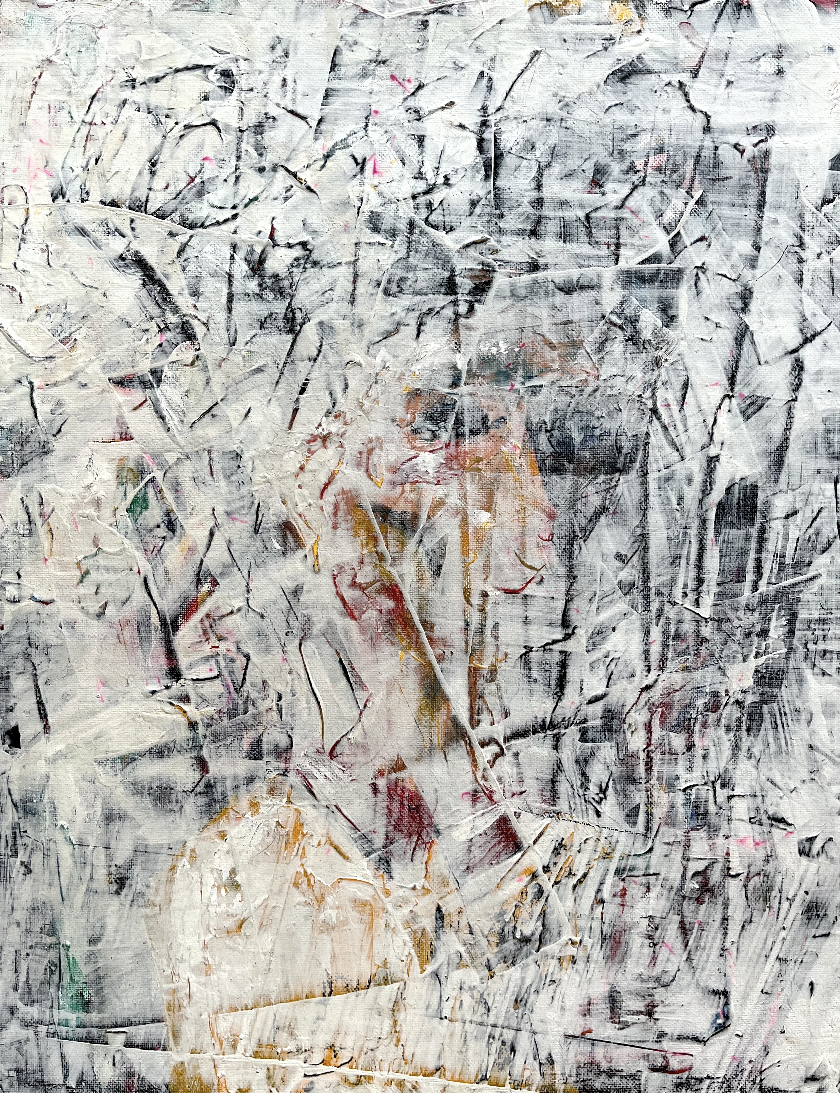 Featured pieces are mostly smaller-scale acrylic on canvas, focusing on texture and figure. (Click for higher resolution)